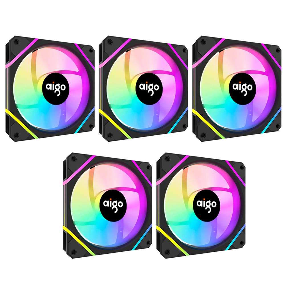 Cooler para Gabinete AIGO AM12 Pro 12×12 ARGB Negro (KIT CON 5)