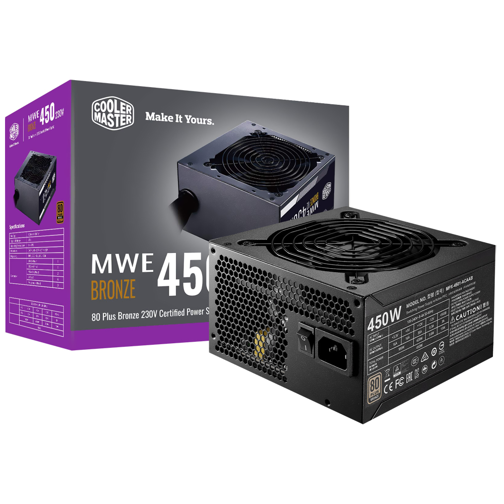 Fuente de Alimentación Cooler Master MWE 450W ATX No Modular 80 Plus Bronze – MPE-4501-ACAAB-US