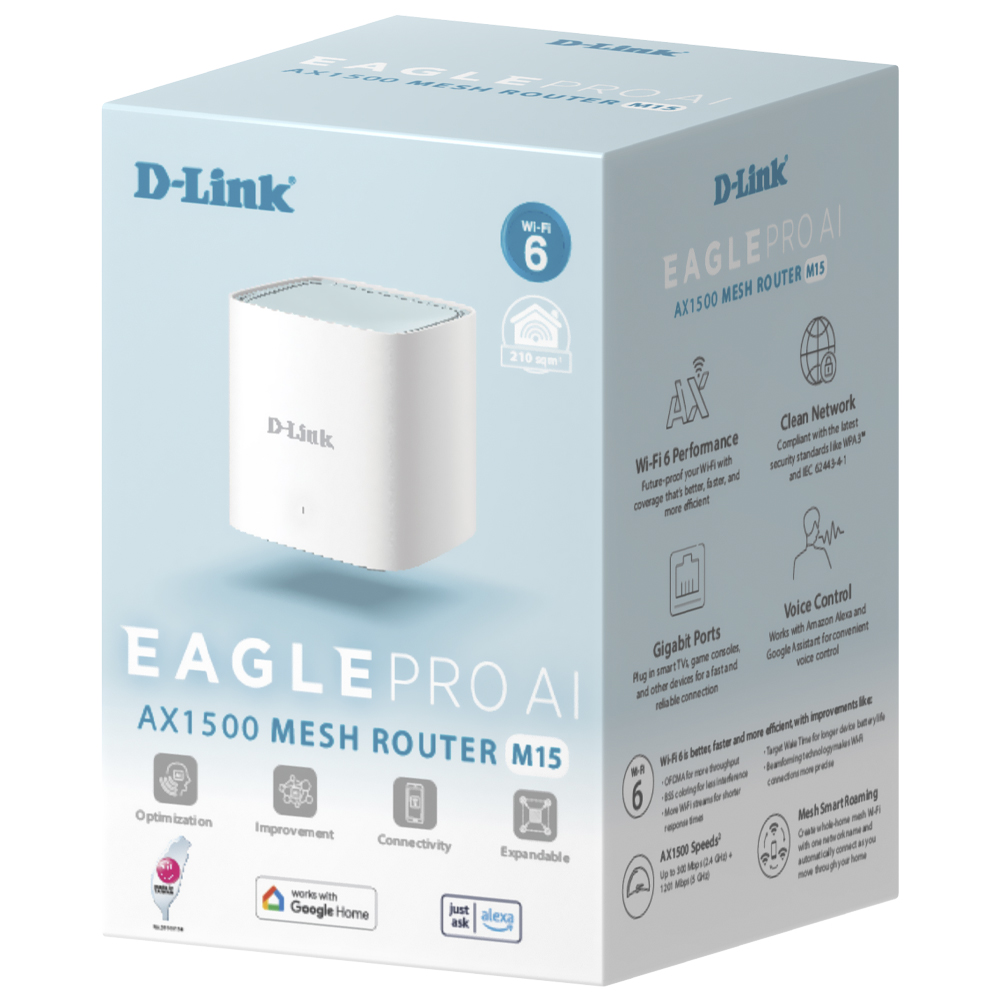 Router D-Link M15 Eagle Pro AI Mesh AX1500 Dual Band 2.4GHz 5GHz 1500Mbps