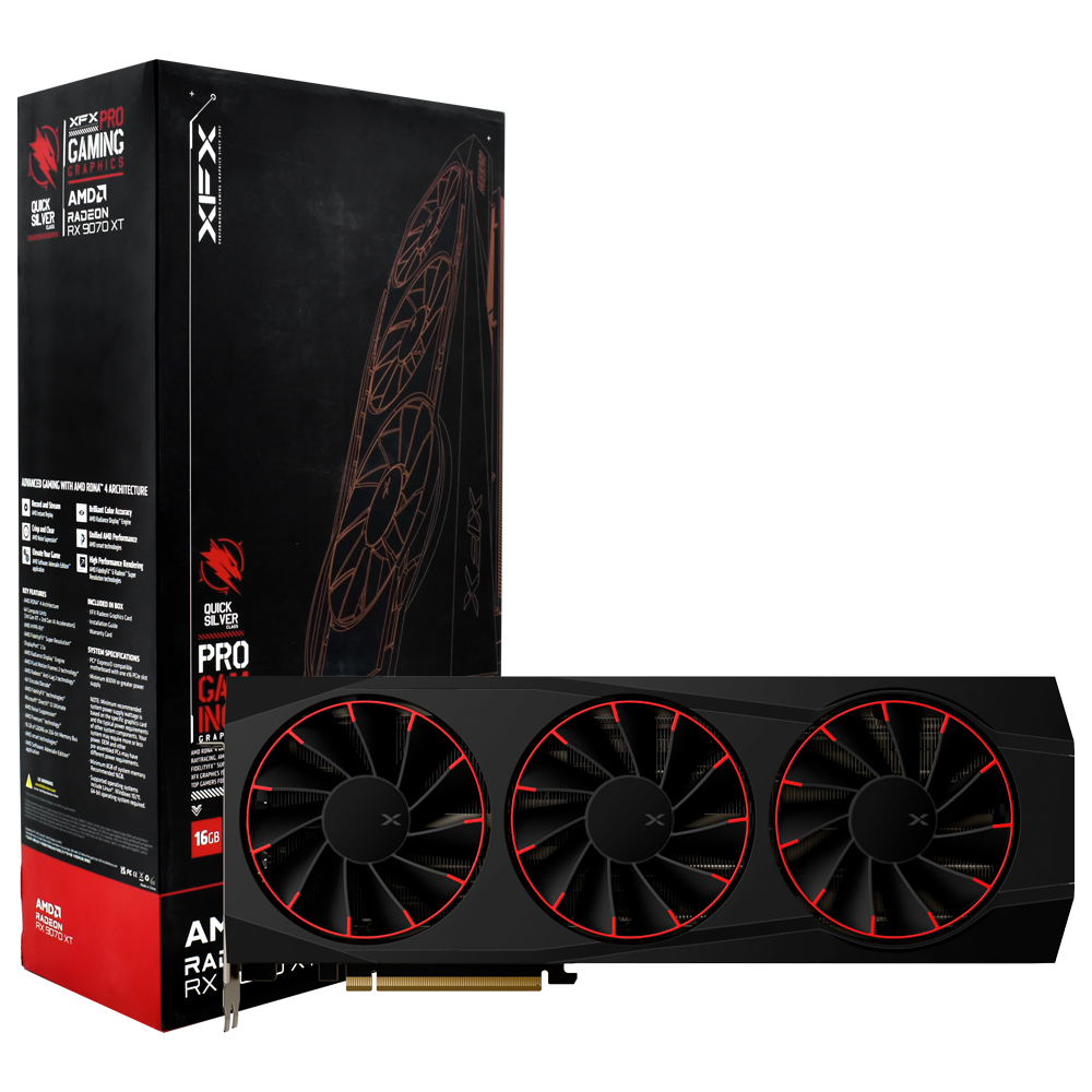 Tarjeta Gráfica 16 GB XFX Radeon RX 9070 XT Quick Silver Gaming Magnetic 2970 MHZ 256 – BIT GDDR6 / DISPLAYPORT / HDMI RX – 97TMAQKB9