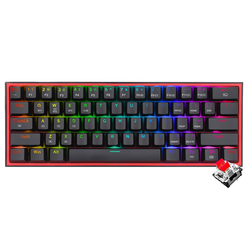 Teclado Gamer Mecánico Redragon K616-RGB Fizz Pro Mini Wireless RGB RED Inglés Negro