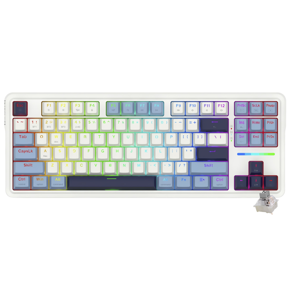 Teclado Gamer Mecánico REDRAGON K728WBB-RGB-Pro Antonium Pro Wireless RGB Inglés-Blanco