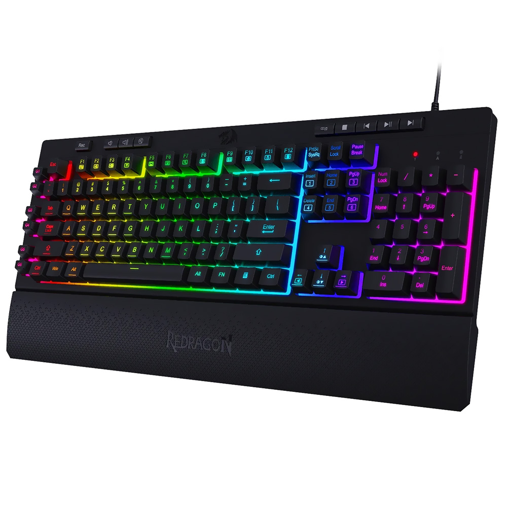 - Caracteristicas: Redragon Shiva hecho especialmente para aquellos usuarios que buscan un teclado silencioso para usar mientras juegan – 6 teclas macro dedicadas, reposamuñecas magnético y teclas multimedia.